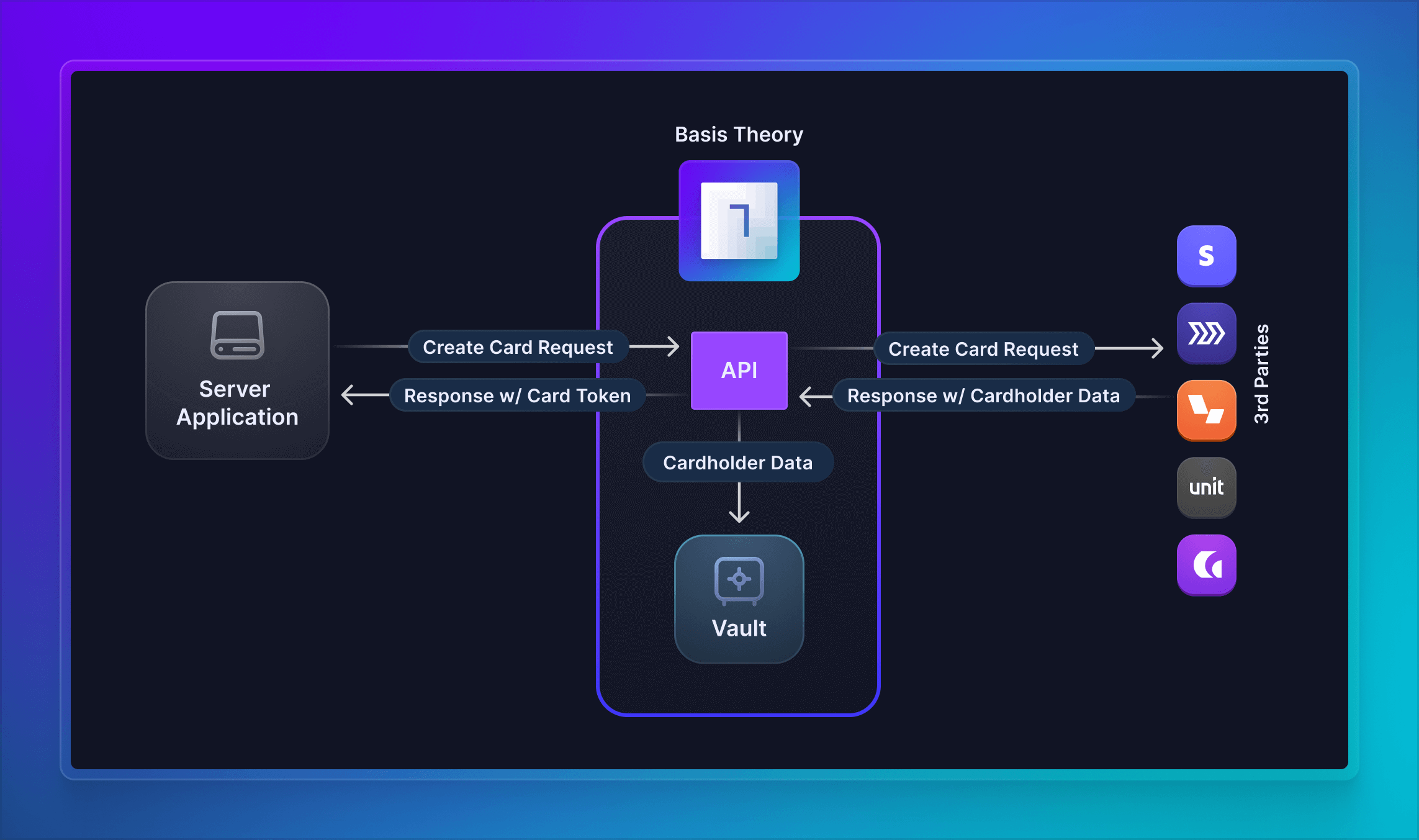 In this guide, we will leverage the Basis Theory Proxy API to set up a thin layer for handling the Issuer API responses and storing the newly issued cardholder data in a secure vault using tokenization. By following a small series of simple steps, we can unlock possibilities for using this sensitive data in various scenarios without taking on any unnecessary compliance scope.