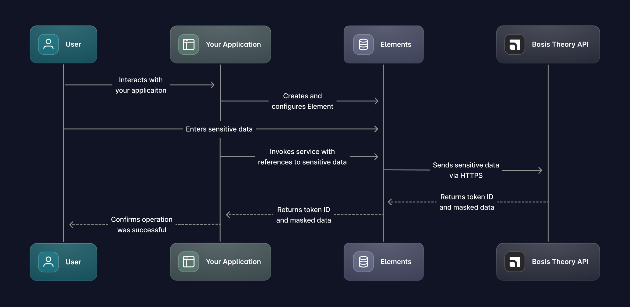 Elements securely capture data entered by your users and tokenize it in the Basis Theory vault without exposing plaintext data to your application.