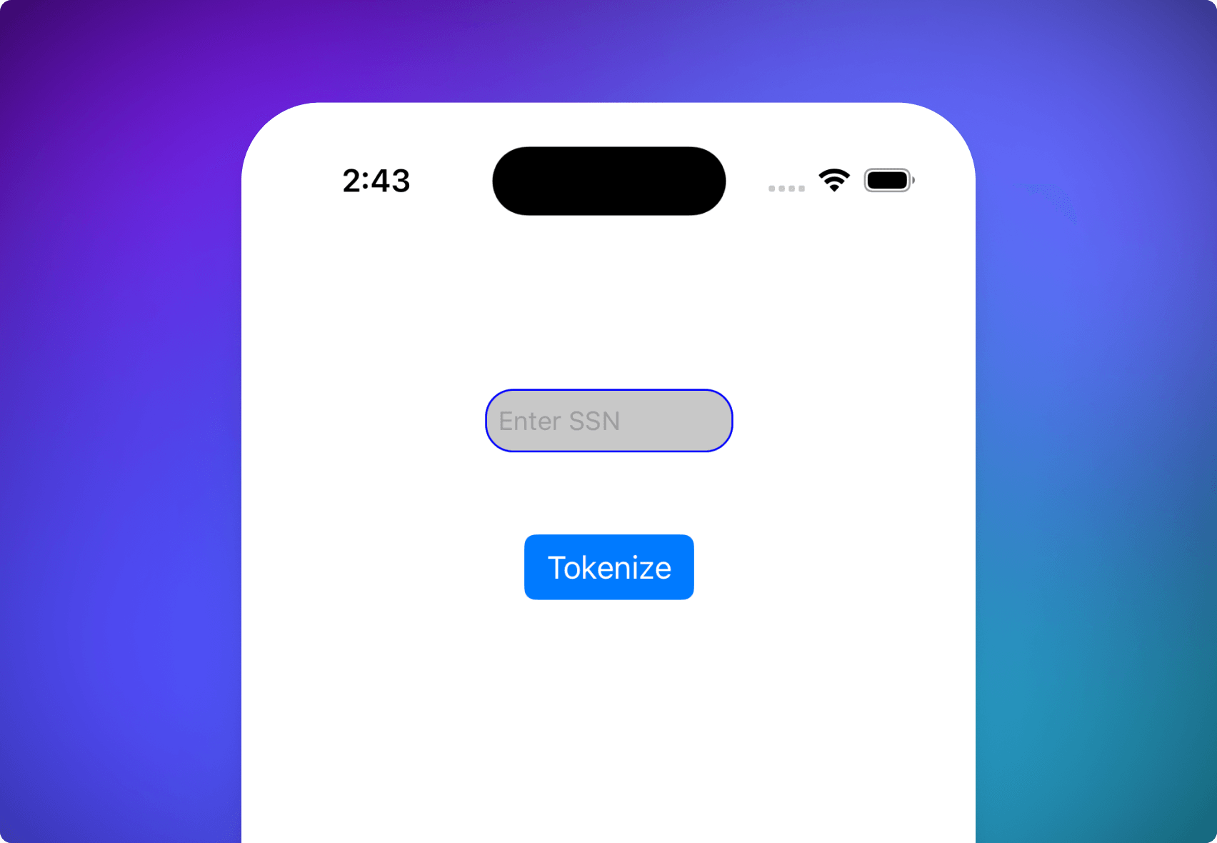 Try typing in a social security number in the TextElementUITextField and tap on Tokenize. Basis Theory's iOS SDK will pass the value for the element reference. This will be securely submitted directly to the Create Token Endpoint. The resulting token is printed to the Xcode console.