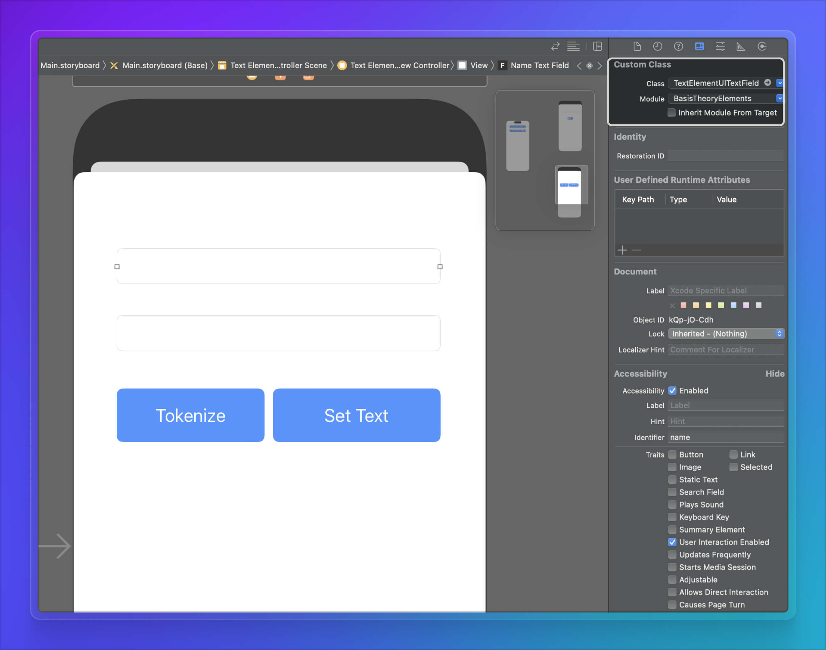 Now it's time to style our new TextElementUITextField. We'll be styling our element programmatically, but feel free to style it through the GUI on Xcode, or even try implementing your own styles!